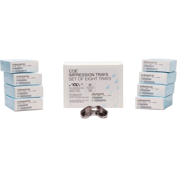 GC COE® Impression Tray regular BM – Készlet 8 (felső-101, felső-104, felső-107, felső-109, alsó-120, alsó-121, alsó-122, alsó-124), tömör.