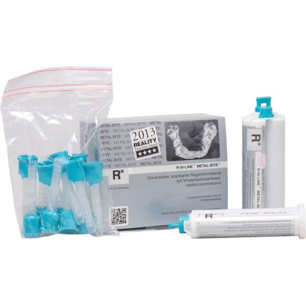 R-SI-LINE® METAL-BITE® - Packung 2 x 50 ml Doppelkartusche grau, 12 Mischkanülen SXN - MBK1074