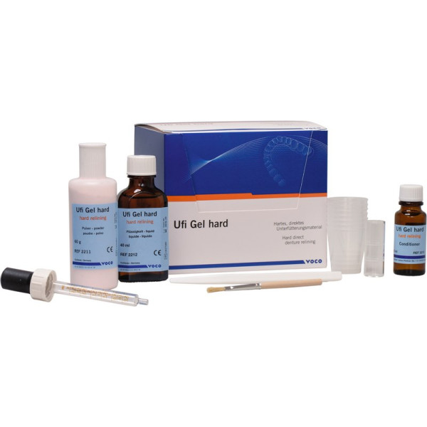 Chairside anzuwendendes, hartes Unterfütterungsmaterial für totale und partielle Prothesen, sowie zur Erweiterung von Prothesenrändern. Einfache Verarbeitung, passgenaue, dauerhafte direkte Unterfütterung mit nur 6 min. Verweildauer im Mund, geringe Wärmeentwicklung, rosa transluzent mit hoher Farbstabilität, frei von Methylmethacrylaten und geschmacks- und geruchsneutral. Packung 60 g Pulver