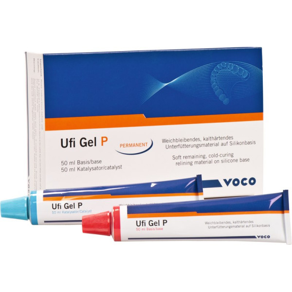 Ufi Gel P, Alábélelo-anyag, Tubusok, szagsemleges, semleges ízű, biokompatibilis, Bázis anyag + Katalizátor, 50 ml, 2 darab