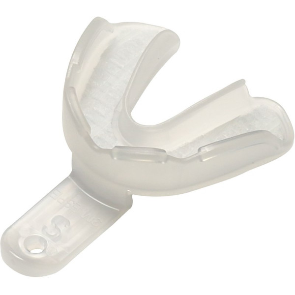 Die gebrauchsfertigen Impression Trays verfügen über ein integriertes Retentionsvlies, welches das Abformmaterial zuverlässig im Löffel hält. Ein Löffeladhäsiv ist nicht erforderlich - dadurch sparen Sie wertvolle Vorbereitunszeit. Impression Trays sind in jeweils 3 optimierten Größen für Ober- und Unterkiefer erhältlich, um eine sehr gute Passung für nahezu jeden erwachsenen Patienten zu bieten. Das besondere Löffeldesign bewirkt einen höheren Stempeldruck während der Abformung und vermindert die Bildung von strömungsbedingten Fließfahnen. Die hygienischen Impression Trays sind Einwegartikel. Das Auffangreservoir und der umlaufende Retentionsrand verhindern, dass überschüssiges Material in den Rachen fließt. Packung 10 Trays UK S