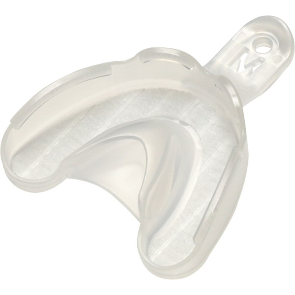 Die gebrauchsfertigen Impression Trays verfügen über ein integriertes Retentionsvlies, welches das Abformmaterial zuverlässig im Löffel hält. Ein Löffeladhäsiv ist nicht erforderlich - dadurch sparen Sie wertvolle Vorbereitunszeit. Impression Trays sind in jeweils 3 optimierten Größen für Ober- und Unterkiefer erhältlich, um eine sehr gute Passung für nahezu jeden erwachsenen Patienten zu bieten. Das besondere Löffeldesign bewirkt einen höheren Stempeldruck während der Abformung und vermindert die Bildung von strömungsbedingten Fließfahnen. Die hygienischen Impression Trays sind Einwegartikel. Das Auffangreservoir und der umlaufende Retentionsrand verhindern, dass überschüssiges Material in den Rachen fließt. Packung 10 Trays OK S
