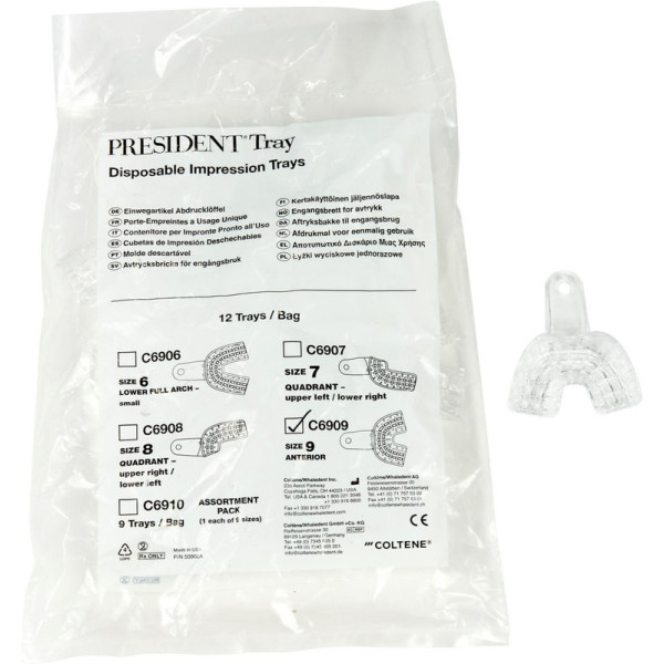 PRESIDENT® Abformlöffel - Packung 12 Stück Frontzähne OK/UK Gr. 9 - C6909