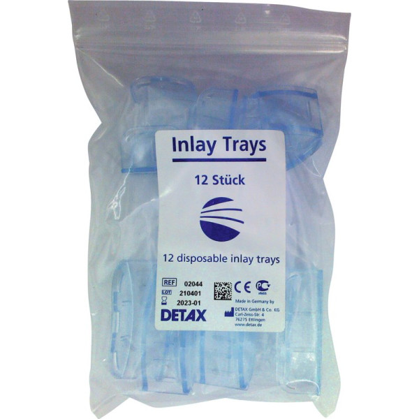 Inlay-Löffel in neuem Design für mehr Abformsicherheit, mechanisch verbesserte Löffelretention. Geeignet für partielle Abdrücke, Vorabformung für Provisorien, Inlays, Kronen- und Brückenarbeiten. Einwegartikel aus Kunststoff, perforiert. Farbe hellblau-transparent. Sortiment 2 x 6 Löffel (groß, klein)