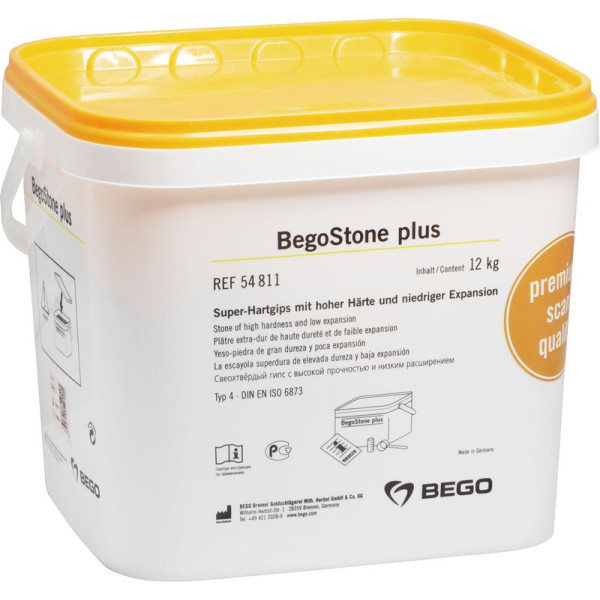 BegoStone plus der zuverlässige Superhartgips mit Chargen-Konstanz. Superhartgips Typ 4 zum Herstellen von Modellen für Inlays, Kronen, Brücken und Modellguss. Superhartgips mit kontrollierter Chargen-Konstanz für jederzeit reproduzierbare Ergebnisse.Hervorragendes Fließverhalten ermöglicht blasenfreies AusgießenTixotroper Gips: lässt sich sofort aufbauen und hat schon unter leichten Vibrationen hervorragende FließeigenschaftenHöchste Wiedergabegenauigkeit bei allen gängigen AbformmassenExtrem hohe Biegezugfestigkeit: viel Widerstand gegen das Abbrechen von Zähnen und StümpfenAbriebfest durch hohe Härte und sehr glatte Modelloberflächen Ideale lineare Expansion von 0,09 %Günstige Verarbeitungszeit von ungefähr 5 MinutenDurch die vorteilhafte Farbe elfenbein 35 sind Präparationsgrenzen und Feinheiten besonders deutlich zu erkennen Eimer 12 kg Superhartgips