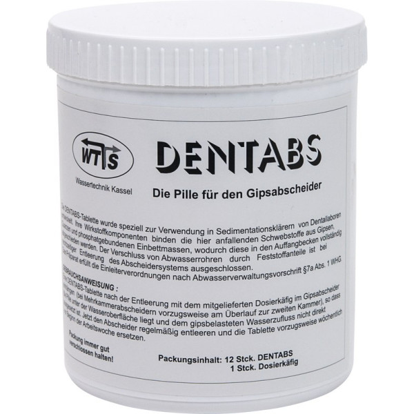 Die Tablette für den Gipsabscheider, bindet Gipse, Quarze und phosphatgebundene Einbettmassen. Verhindert den Verschluss von Abwasserrohren. Erleichtert die Reinigung des Abscheiders, vermindert den Fäulnisgeruch. Einfach mit dem Dosierkäfig in den Gipsabscheider einhängen. 1 Tablette reicht für 1 Woche. Dose 12 x 20 g Tabletten, 1 Einhängekorb