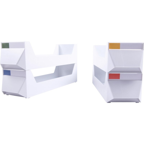 Die Trays dienen zur Aufbewahrung von Kiefermodellen, Apparaturen und PA-Modellen. Wechseletiketten mit 4 verschiedenen Farbkodierungsstreifen sichern die notwendige Übersicht und Ordnung. Die Trays sind stapelbar und haben eine Griffmulde, die das praktische Herausnehmen mit einer Hand ermöglicht. In ein Tray passen bis zu fünf gesockelte Modell-Paare. Stück Tray