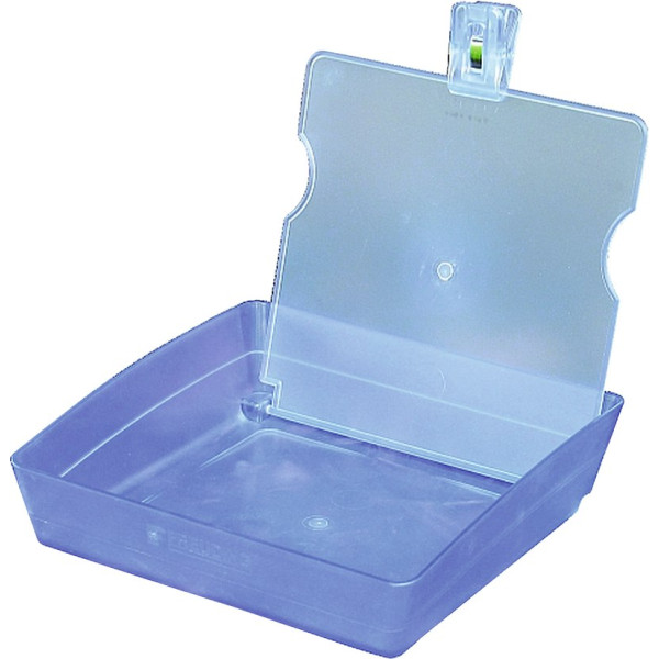 Organisationstalente gesucht? Die neuen Arbeitsschalen von Freuding bringen Farbe in Ihr Labor!Moderne Arbeitsschalen in sechs transluzenten Farben aus schlagfestem ABS-Material für die farborientierte Organisation von zahntechnischen Arbeiten. Sie sind stapelbar, platzsparend und ausgerüstet mit einer auswechselbaren Schwenkklappe die sich arretieren lässt. Eine Klammer in passender Farbe ist inklusive. Größe: 20,3 x 20,3 x 6 cm, aufgeklappt mit Klammer 20,3 x 20,3 x 21,2 cm. Stück Arbeitsschale eisblau