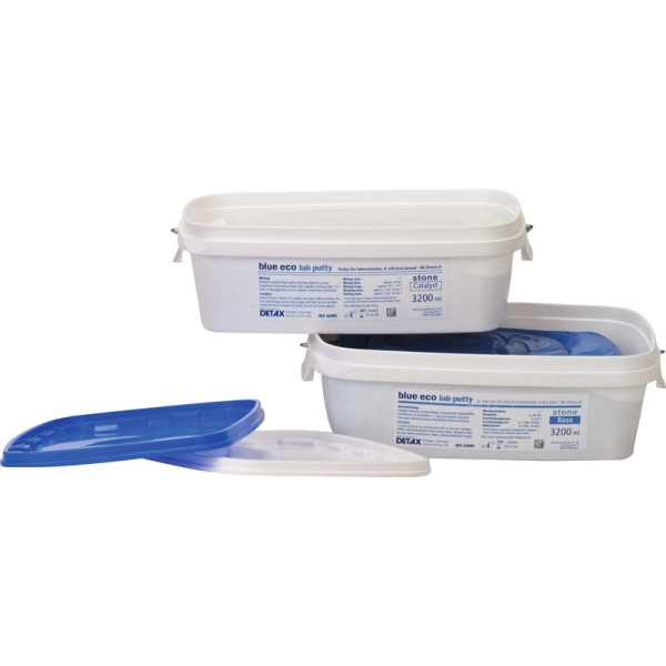 Labor-Knetmasse, auf A-Silikonbasis, hohe Viskosität, weichgeschmeidige Ausgangskonsistenz. Hohe Zeichnungsgenauigkeit, dimensionsstabil, besonders weichgeschmeidig, hitzebeständig bis 200 °C. Extra hohe Endhärte, ca. 96 Shore A, vielseitig einsetzbar. (Herstellung von Vorwällen, Kontrollbissen, Modelle für Prothesenreparaturen, Ausblockungen, Isolierung von Zähnen bei Küvetteneinbettung, etc.), sehr ergiebig, einfach zu beschneiden. Großpackung 3,2 Liter Base, 3,2 Liter Katalysator, 2 Dosierlöffel