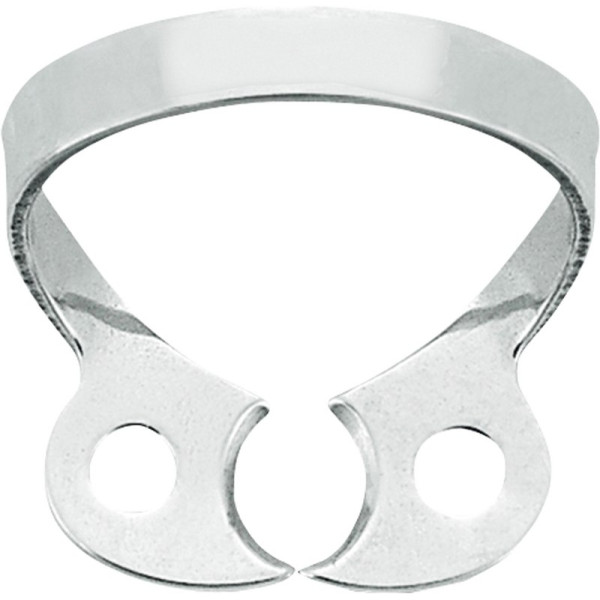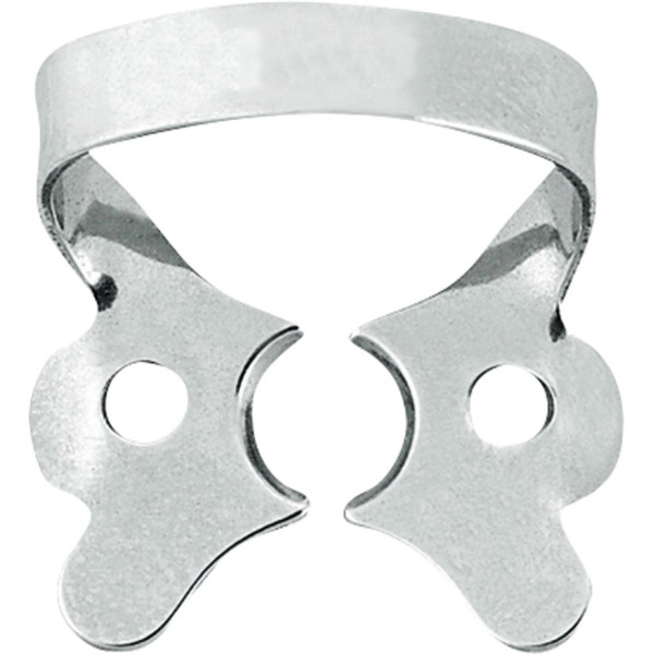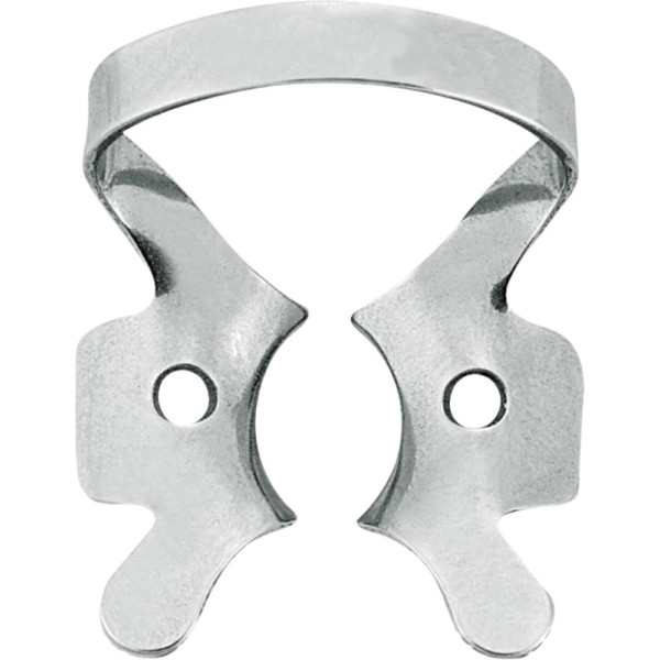 Hochwertige Edelstahlklammern mit zuverlässig konstanter Spannung zur Fixierung des Kofferdams am zu behandelnden Zahn.