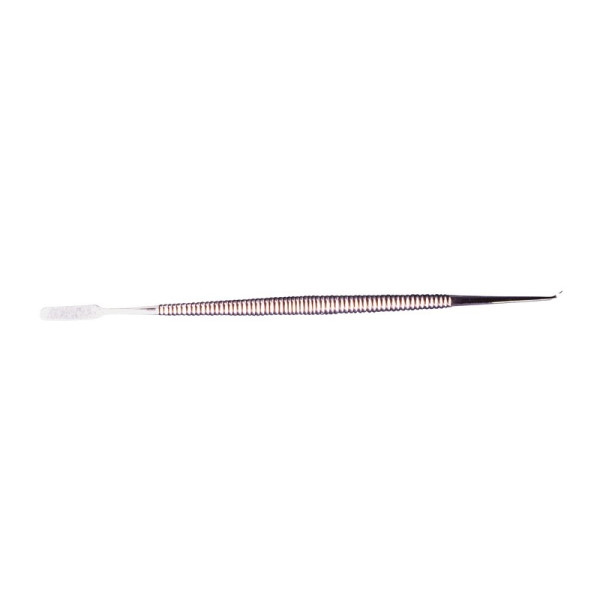 Kombi-Instrument aus extra hartem, kratzfestem Edelstahl für Schichtung und VerdichtungFlexibler Spatel zum Anmischen der Keramik und Schichten des DentinkernsGeriffelter Griff für definierte Vorverdichtung während der SchichtungKleiner Portionierer zur schnellen, kontrollierten Beigabe von Effektmassen Stück