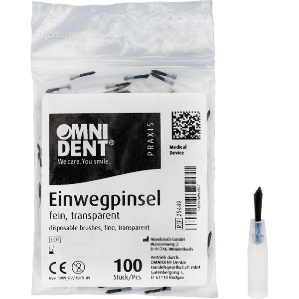 Einwegpinsel - Packung 100 Stück transparent, Haar schwarz und kurz, fein - 25449