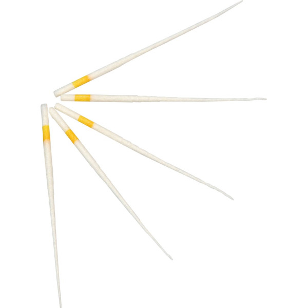 HyFlex EDM Papierspitzen sind ideal für die Trocknung von Wurzelkanälen, die mit HyFlex EDM Feilen aufbereitet wurden. Am Anfang der Spitze entspricht der Durchmesser den ISO-Grössen, dann folgt der konische Verlauf dem der EDM Feilen. Als Einzelgrössen und als Sortierungen lieferbar ≥ 28mm Packung 100 Papierspitzen EDM One File, ISO 025