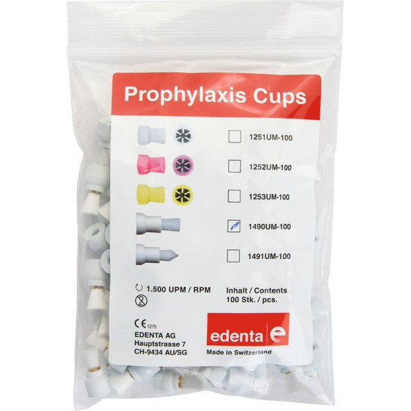 Snap-On Bürsten zur Beseitigung von Zahnbelägen, mit Polierpaste. In Verwendung mit dem Snap-On Mandrell 4037RA. Kleiner Kelch - Zur Politur von Front- / und Zahnhals-Bereichen sowie von okklusalen Reliefs in Seitenzahnbereichen. Spitze - Zur Politur von tiefen okklusalen Fissuren im Seitenzahnbereich. Packung 100 Bürsten Spitze, ISO 035