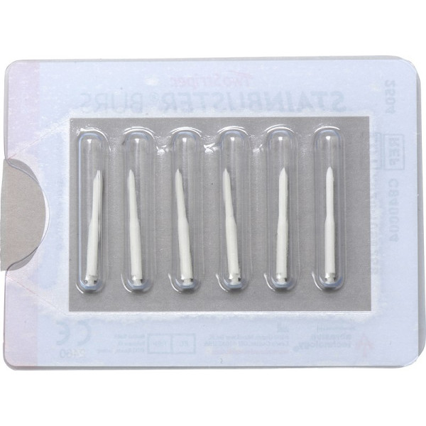STAINBUSTER® Zirkon-Glasfaser-Polierer. Entfernung von Verfärbungen sowie verfärbten BelägenReinigung des Schmelzes nach UltraschallbehandlungEntfernung von ZementüberschussEntfernung von Zementresten nach Abnahme von BracketsWurzelglättung nach Scaling zur verbesserten HeilungKeine Beschädigung des ZahnschmelzesGleitet über Weichgewebe ohne zu verletzenKeine Abrasion von KeramikSelbstschärfend und kontinuierlicher AbrasionseffektZur Verwendung im Winkelstück -Maximal 10.000 U/minUnter leichtem Druck und WasserspraySterilisierbar im Autoklaven bis 135°C Packung 6 Polierer Standard 2502, RA