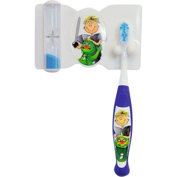 Dental szett, compact Packung Ritter (1 Zahnbürste, 1 Zahnbürstenhalter mit Zahnputzuhr) kék