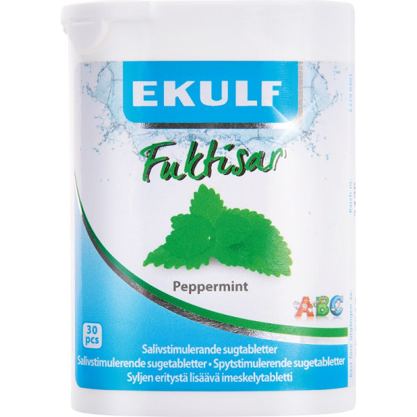 EKULF Fuktisar stimulieren die Speichelproduktion, haben einen guten Geschmack und sorgen für ein frisches und angenehmes Gefühl im Mund. Sie sind zuckerfrei und enthalten stattdessen die Süßungsmittel: Xylit, Sorbit, Isomalt und Steviolglycoside. Eine Tablette hat 1000 mg. Packung 30 Tabletten Lemon