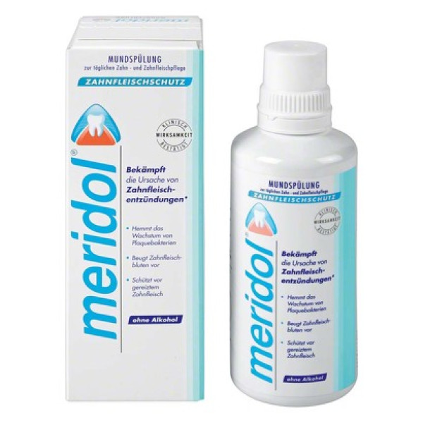 meridol® Mundspülung Antibakteriell, schützt wirksam vor Zahnfleischentzündungen Bekämpft Plaque-Bakterien und hemmt das Wachstum lang anhaltend & beugt Zahnfleischbluten vor Unterstützt die Regeneration von gereiztem Zahnfleisch Zur täglichen Zahn- und Zahnfleischpflege Ohne Alkohol Fluoridgehalt: 250 ppm (Aminfluorid, Zinnfluorid) Flasche 400 ml