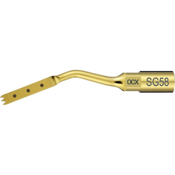 Diese neuen Ultraschall-Aufsätze stellen eine signifikante und wichtige Erleichterung bei der Durchführung von internen Sinusbodenelevationen dar. Sie stehen für minimalinvasive chirurgische Eingriffe und ein Maximum an Sicherheit bei diesem sensiblen Eingriff. Knochenschnitte mittels Ultraschall reduzieren das Perforationsrisiko der Sinusmembran (Schneidersche Membran) und aufgrund der Tatsache, dass Schnitte ohne Osteotom durchgeführt werden, ist der Patientenkomfort erhöht und das Risiko postoperativer Komplikationen – wie zum Beispiel Gleichgewichtsstörungen – reduziert. Stück Spatelansatz SG4