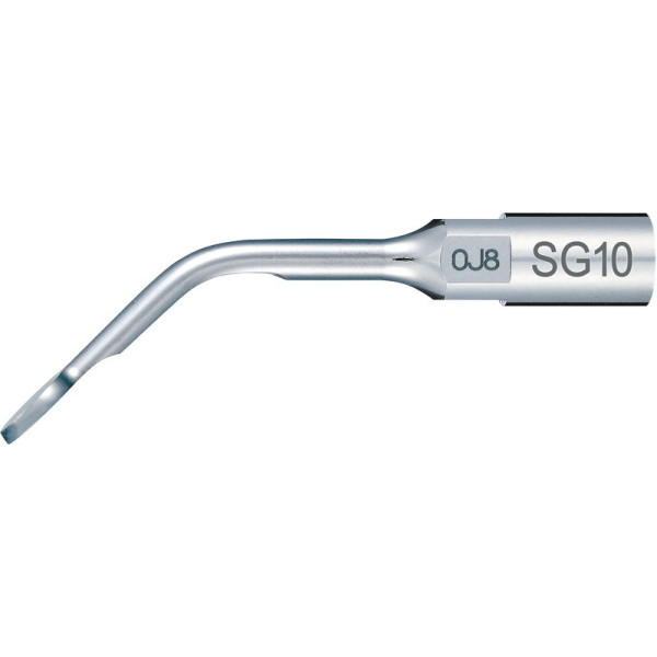 Diese neuen Ultraschall-Aufsätze stellen eine signifikante und wichtige Erleichterung bei der Durchführung von internen Sinusbodenelevationen dar. Sie stehen für minimalinvasive chirurgische Eingriffe und ein Maximum an Sicherheit bei diesem sensiblen Eingriff. Knochenschnitte mittels Ultraschall reduzieren das Perforationsrisiko der Sinusmembran (Schneidersche Membran) und aufgrund der Tatsache, dass Schnitte ohne Osteotom durchgeführt werden, ist der Patientenkomfort erhöht und das Risiko postoperativer Komplikationen – wie zum Beispiel Gleichgewichtsstörungen – reduziert. Stück Sinusmembran Ansatz SG10