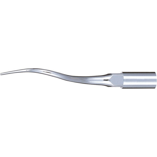 Diese neuen Ultraschall-Aufsätze stellen eine signifikante und wichtige Erleichterung bei der Durchführung von internen Sinusbodenelevationen dar. Sie stehen für minimalinvasive chirurgische Eingriffe und ein Maximum an Sicherheit bei diesem sensiblen Eingriff. Knochenschnitte mittels Ultraschall reduzieren das Perforationsrisiko der Sinusmembran (Schneidersche Membran) und aufgrund der Tatsache, dass Schnitte ohne Osteotom durchgeführt werden, ist der Patientenkomfort erhöht und das Risiko postoperativer Komplikationen – wie zum Beispiel Gleichgewichtsstörungen – reduziert. Stück Perioansatz P25R-S