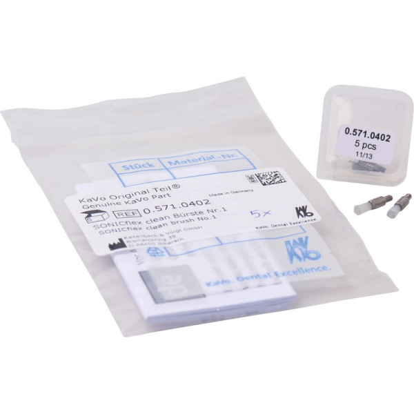 Bürsteneinsätze zur Reinigung von Implantatoberflächen bei Periimplantitis, von Kronenstümpfen und Provisorien. Wichtiger Hinweis: Spitzen mit dem Zusatz "A" dürfen durch das kürzere Gewinde nur auf dem KaVo SONICflex quick 2008L/LS verwendet werden. Spitzen ohne die zusätzliche Kennzeichnung mit dem Buchstaben "A" dürfen nur auf dem KaVo SONICflex 2000N/L und 2003L/LX/NX verwendet werden. Packung 5 Bürsten Plan, klein