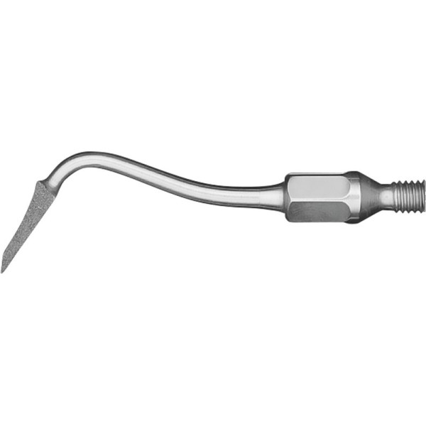 Einseitig diamantierte Spitzen mit definiertem Kantenwinkel von: lateral 45-60° und cervical 60° nach Dr. Hugo. Wichtiger Hinweis: Alle aufgeführten KaVo SONICflex Spitzen dürfen nur auf KaVo SONICflex 2000 N/L und 2003 L/LX/NX benutzt werden. Für das neue SONICflex 2008 L/LS werden die Spitzen zwar mit der gleichen Hersteller-Nummer, allerdings mit der zusätzlichen Kennzeichnung A verwendet. Stück Spitze mesial Nr. 49A