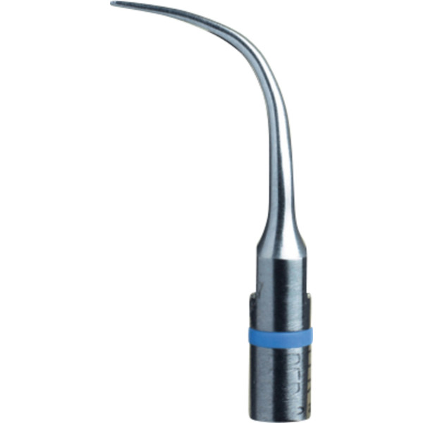 Spitze PFU - Universal-Spitze zur Entfernung der Zahnplaque. Für geringe Ablagerungen unter dem Zahnfleisch. Die Anwendung erfolgt tangential; die Anpassung der Form an die Anatomie des Zahns sorgt für einen leichten und schmerzfreien Zugang. Spitze PFL - Zur Zahnsteinentfernung zwischen zwei benachbarten Zähnen im Feinmodus. Die Spitze ist links gebogen und ermöglicht durch die tangentiale Anwendung einen leichten Zugang zu den Prämolaren und Molaren. Spitze PFR - Die Spitze ist rechts gebogen, wird tangential angewendet und ist für die Reinigung und Spülung der mittleren Taschen geeignet. Stück PERIOFINE Spitze PFR rechts, F 02172