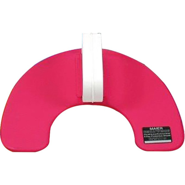Das Maier-Strahlenschutzschild ist der DIN EN 61331-3 entsprechend gestaltet und mit einer Bleieinlage von 0,6 mm versehen. Es fängt das Nutzstrahlenbündel bei allen intraoralen Röntgenaufnahmen mit Sicherheit auf und wird an einem auswechselbaren Handgriff unter dem Kinn gehalten. Vom Deutschen Institut für Strahlenschutz in München getestet. Stück Schutzschild pink