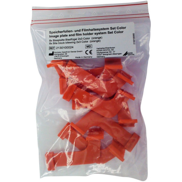 A tartók könnyű kezelni, amikor forgalomba a páciens szájába. A rendszer is használható mind a kerek, mint négyszögletes csövek.Csomagolás 8 harapás lemezeket bitewing 2 x 3, narancssárga