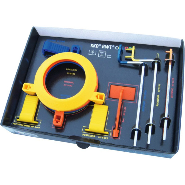 Die RWT® Bißplatten (Anterior, Posterior und Posterior small) sind anwenderfreundlich auf der Rückseite des Halteschilds mit der Größenangabe der zu verwendenden Speicherfolien und Röntgenfilme versehen und für den jeweiligen Anwendungsbereich farbcodiert.