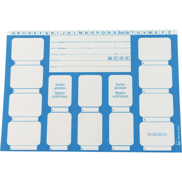 Dentalfilmkarten - selbstklebend - Packung 200 Stück Format DIN A6 quer für 14 Zahnfilme hellblau - 21414