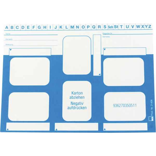 Dentalfilmkarten - selbstklebend - Packung 100 Stück Format DIN A6 quer für 6 Zahnfilme hellblau - 21406
