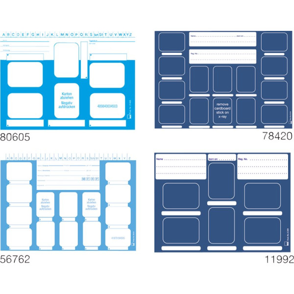 Für Zahnfilme 3 x 4 cm aus hochwertigem Karton. Druck blau mit Selbstklebefolie. Die Positionierung der Filme erfolgt durch Andrücken, wodurch eine ausreichende Haftung erzielt wird. Die Karten haben DIN-Format mit guten Beschriftungsmöglichkeiten. Packung 100 Filmkarten Format DIN A6 quer für 6 Zahnfilme hellblau