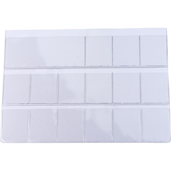 Durch Passgenauigkeit der einzelnen Felder ist ein Verschieben oder Herausfallen des Filmes auch bei starker Beanspruchung ausgeschlossen. Alle Taschen sind DIN A5 quer und aus filmneutraler Hart-Klarsichtfolie. Taschen zum Abheften haben eine Standardlochung für alle Ablagesysteme. Ausführungen mit Datenfeld werden mit einer dazu passenden Datenkarte geliefert. Packung 50 Filmtaschen Filmformat 3 x 4 cm für 15 Zahnfilme mit Datenfeld, ohne Lochung, Nr. 80251