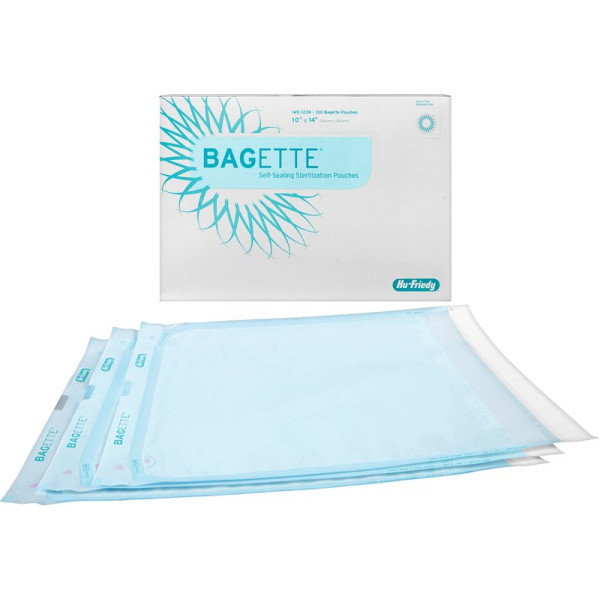 Die aus besonders stabilem Material hergestellten Bagettes haben verstärkte Nähte und einen selbstklebenden Verschluss für einfachstes Handling. Das spezielle, auf die verschiedenen Kassettengrößen abgestimmte Design reduziert Materialverbrauch und Arbeitszeit. Zwei integrierte Indikatorstreifen (innen und außen) zeigen an, dass die erfolgreichen Parameter der Sterilisation erreicht wurden. Packung IMS-1238, 100 Sterilisationstüten, für 8-10 Instrumente, 254 x 356 mm