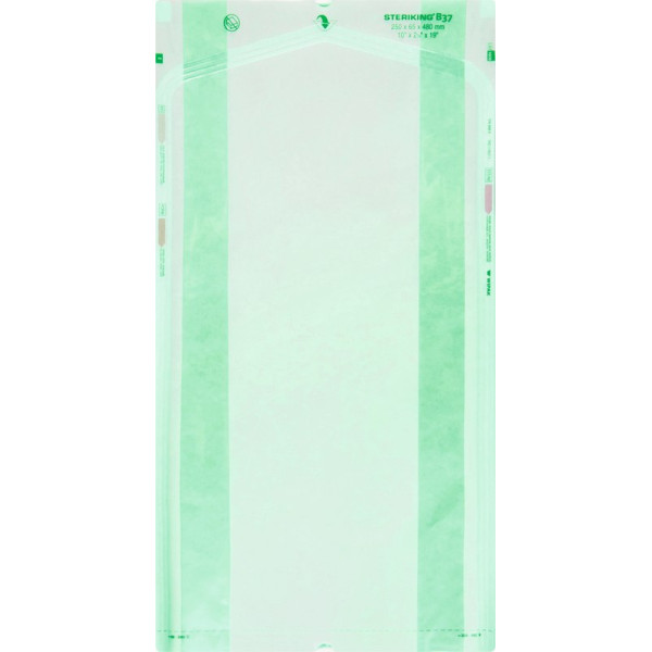 Beutel mit Seitenfalte für größere Gegenstände. Mit aufgedrucktem Prozessindikator für Dampf-, EO- und FO-Sterilisation.Beim Verschließen von Beuteln mit Seitenfalte dürfen an der Siegelkante keine Knitter entstehen. Beim Öffnen von Beuteln mit Seitenfalte muss darauf geachtet werden, dass an den Seitenfalten keine Risse entstehen.