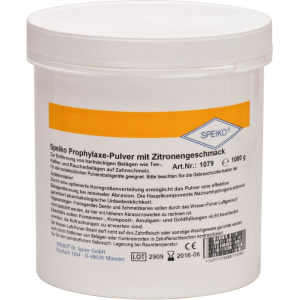 Zur Entfernung von hartnäckigen Belägen wie Tee-, Kaffee- und Raucherbelägen auf ZahnschmelzGeeignet für alle handelsüblichen PulverstrahlgeräteDurch geeignete Korngrößenverteilung effektive Belagentfernung bei minimaler AbrasionAngenehm für den Patienten durch frischen Minz- oder Zitronengeschmack Dose 1 kg Pulver Minze