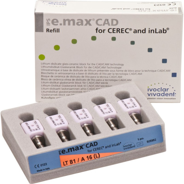 IPS e.max CAD Abutment Solutions for CEREC/inLab - Packung 5 Stück A-D, Gr. A16L, B1 LT - 644389