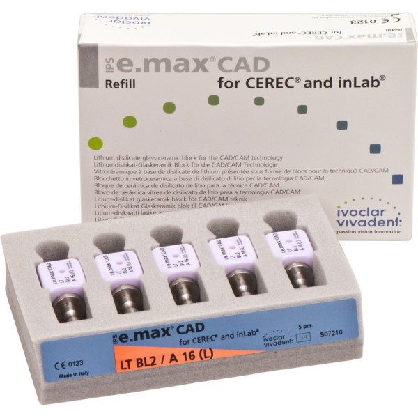 IPS e.max CAD Abutment Solutions for CEREC/inLab - Packung 5 Stück A-D, Gr. A16L, BL2 LT - 645599