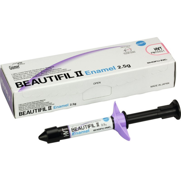 Beautifil II - Fluoridabgebendes Füllungsmaterial für den Front- und Seitenzahnbereich.Beautifil II überzeugt durch sein ästhetisches Erscheinungsbild mit einer ausgezeichneten Farbtonabstimmung und exzellenten Verarbeitungseigenschaften. Es werden dauerhaft Fluoride freigesetzt, die einen effektiven wirksamen Schutz vor Sekundärkaries bieten. ´Spritze 2,5 g enamel high-value translucent