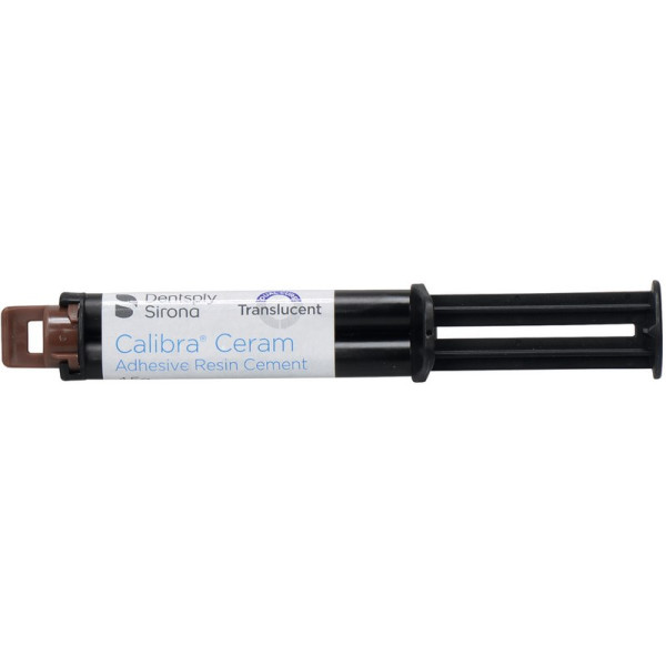 Der Calibra® Ceram adhäsive Kompositzement ist ein mit sichtbarem Licht härtender, dualhärtender oder selbsthärtender hochfester Kompositzement mit Fluorid. Der Calibra® Ceram Zement ist für die Verwendung nach dem Auftragen eines kompatiblen Dentin-/Schmelzadhäsivs konzipiert. Auch wenn er mit zahlreichen indirekten restaurativen Materialien kompatibel ist, gibt es besondere Anweisungen für die Verwendung mit lichtdurchlässigen Restaurationen. Packung 4,5 g Automix Spritze transluzent, 10 Mischkanülen