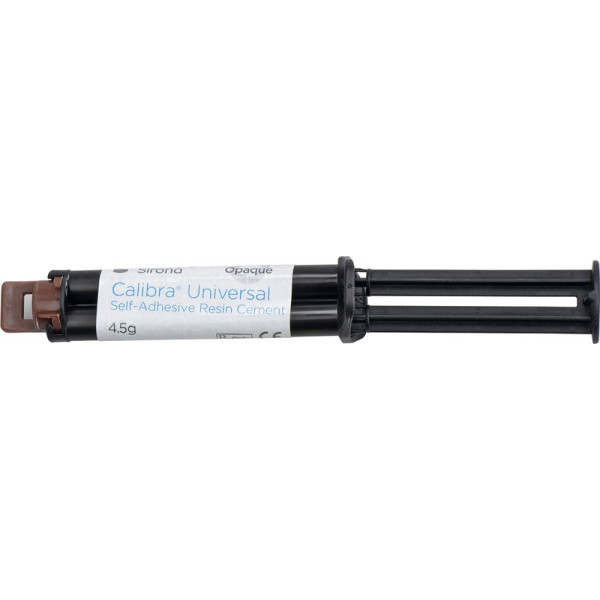 Calibra® Universal Selbstbefestigungszemtent ist ein aus zwei Komponenten bestehender, dualhärtender, hochfester selbsthärtender Zement, der Fluorid enthält. Calibra® Universal kombiniert eine ästhetische Farbgestaltung mit einem selbst-ätzenden Adhäsiv, sodass er für die permanente Befestigung von Metall-, Metallkeramikrestaurationen, Komposit-, Keramikinlays, Onlays, Kronen, Brücken sowie Wurzelstiften ohne separate Anwendung eines Schmelz- und Dentin-Adhäsivsystems geeignet ist. Ausgehärteter Calibra® Universal Zement ist im Wesentlichen hydrophob, was eine Wasseraufnahme nach dem Aushärten, Löslichkeit und das Auftreten einer hygroskopischen Expansion minimiert. Packung 2 x 4,5 g Automix Spritze opak, 20 Mischkanülen