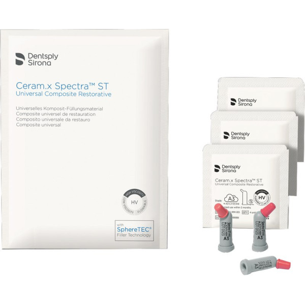 Der neue Markenname für ceram.x® universal! Nanokeramisches lichthärtendes röntgenopakes Universalkomposit auf Grundlage der neuartigen SphereTEC® Füllertechnologie für direkte und indirekte Restaurationen. SphereTEC® steht für eine neue Füllertechnologie mit granulierten sphärischen Füllern in Kombination mit einer optimierten Harzmatrix. Das Resultat sind herausragende Eigenschaften in Bezug auf Verarbeitung und Ästhetik! Packung 52 x 0,25 g Compule A3