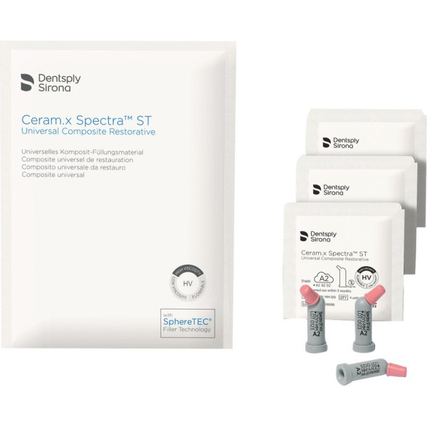 Der neue Markenname für ceram.x® universal! Nanokeramisches lichthärtendes röntgenopakes Universalkomposit auf Grundlage der neuartigen SphereTEC® Füllertechnologie für direkte und indirekte Restaurationen. SphereTEC® steht für eine neue Füllertechnologie mit granulierten sphärischen Füllern in Kombination mit einer optimierten Harzmatrix. Das Resultat sind herausragende Eigenschaften in Bezug auf Verarbeitung und Ästhetik! Packung 52 x 0,25 g Compule A2
