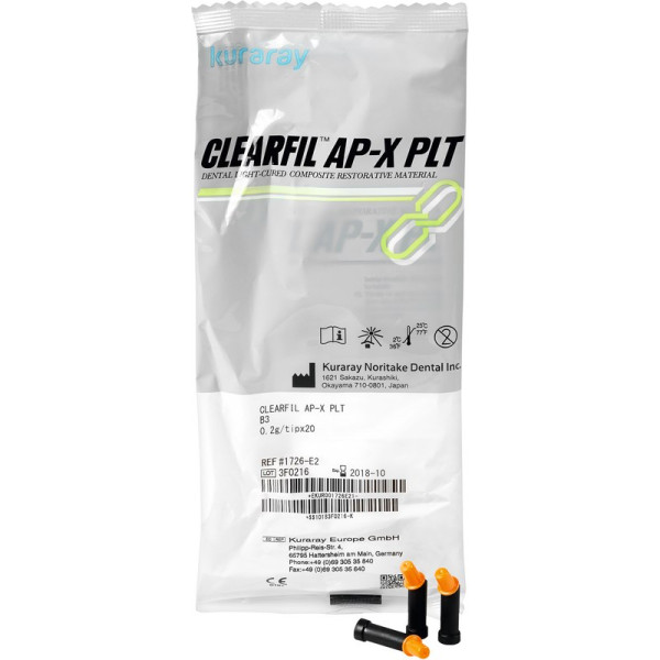 CLEARFIL™ AP-X ist ein lichthärtendes, radioopakes Universalkomposit, das akkurate Farbanpassungen, leichte Polierbarkeit und gute physikalische Merkmale vereint. Durch diese Vorzüge eignet es sich gleichermaßen für Front- und Seitenzahnrestaurationen. Seine Zusammensetzung sorgt für optimale Viskosität und damit für leichte Polierbarkeit und einfache Schichtung. Packung 20 x 0,2 g PLT B3