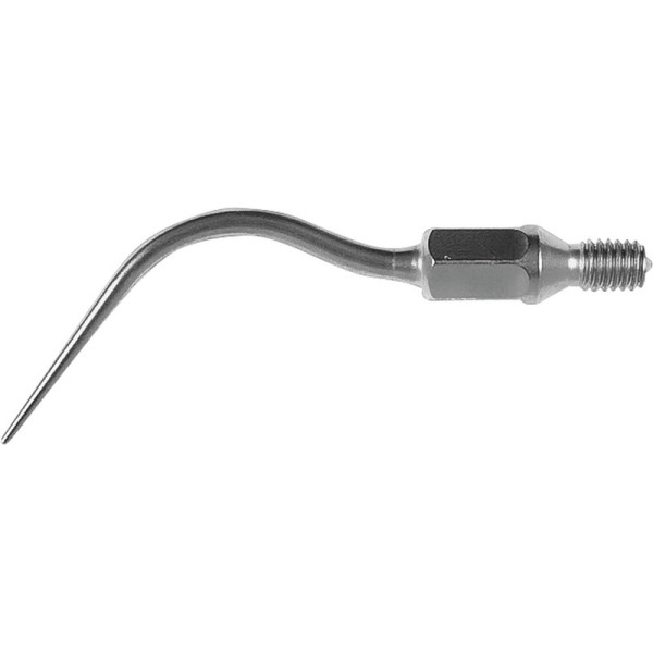 Lange, total abgerundete Spitzen gebogen in verschiedene axialen Richtungen für die ideale Erreichbarkeit aller Taschen in den entsprechenden Quadranten. Wichtiger Hinweis: Spitzen mit dem Zusatz "A" dürfen durch das kürzere Gewinde nur auf dem KaVo SONICflex quick 2008L/LS verwendet werden. Spitzen ohne die zusätzliche Kennzeichnung mit dem Buchstaben "A" dürfen nur auf dem KaVo SONICflex 2000N/L und 2003L/LX/NX verwendet werden. Stück Spitze lang rechts, Nr. 62